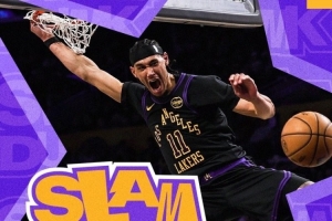 湖人官方晒出海斯扣篮海报,为其加油助威。