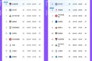 英超积分对比上赛季同期:利物浦-21分断崖下滑,曼联涨15分升第4
