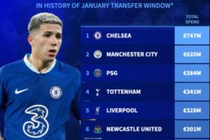 体育资讯02月03日讯 今日北京时间上午6:00,25-26赛季五大联赛冬窗陆陆续续落下了帷幕。德转统计了各支球队自从冬窗设立以来的总支出。